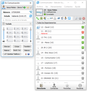 Desde Communicator se pueden realizar llamadas a cualquier destino del sistema, por ejemplo: extensiones, grupos,  colas, conferencias, buzón de voz, …. Las llamadas se pueden realizar con un movimiento de arrastrar y soltar de una extensión a otra, o directamente desde la pantalla del módulo de teléfono a la extensión.