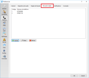El usuario puede configurar la marcación rápida en Communicator. Los dígitos permitidos están en el rango 1-99. Esto no debe confundirse con la marcación rápida de la centralita. Esta es una opción local guardada en el ordenador donde se ejecuta Communicator.