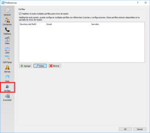 Utilice el botón Agregar para crear un nuevo perfil. Utilice Editar y/o Eliminar en los perfiles existentes de la lista.