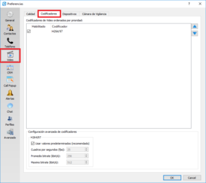 Puede cambiar los ajustes del códec en la sección «Ajustes avanzados del códec», pero recomendamos utilizar los valores predeterminados.