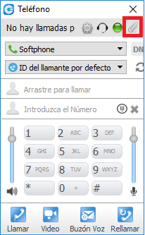 • El icono de «adjunto» se usa para acoplar el módulo Teléfono a la ventana de la aplicación.