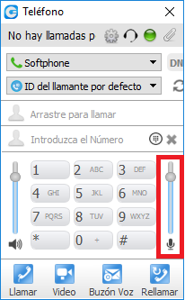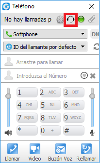 • EL icono del «auricular» permite seleccionar el dispositivo de audio. Este icono nos redirecciona a la sección Preferencias->Teléfono->Dispositivos de audio donde puede seleccionar qué dispositivo de audio de entrada, salida y timbre de llamada que usara Communicator.