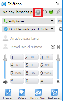 • Desde el módulo de teléfono, pulsando sobre el icono de «configuración» puede modificar el funcionamiento de Communicator y seleccionar el funcionamiento en modo Deskphone (se controlan las llamadas del teléfono sobremesa desde Communicator) o el modo Softphone (Communicator funciona como un teléfono, es necesario micrófono y altavoces / cascos).